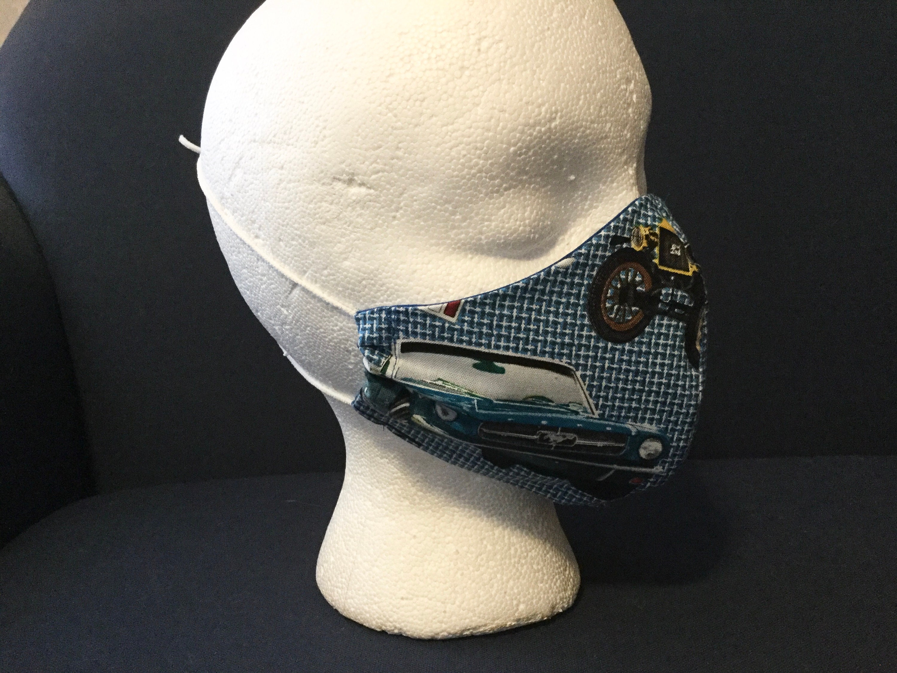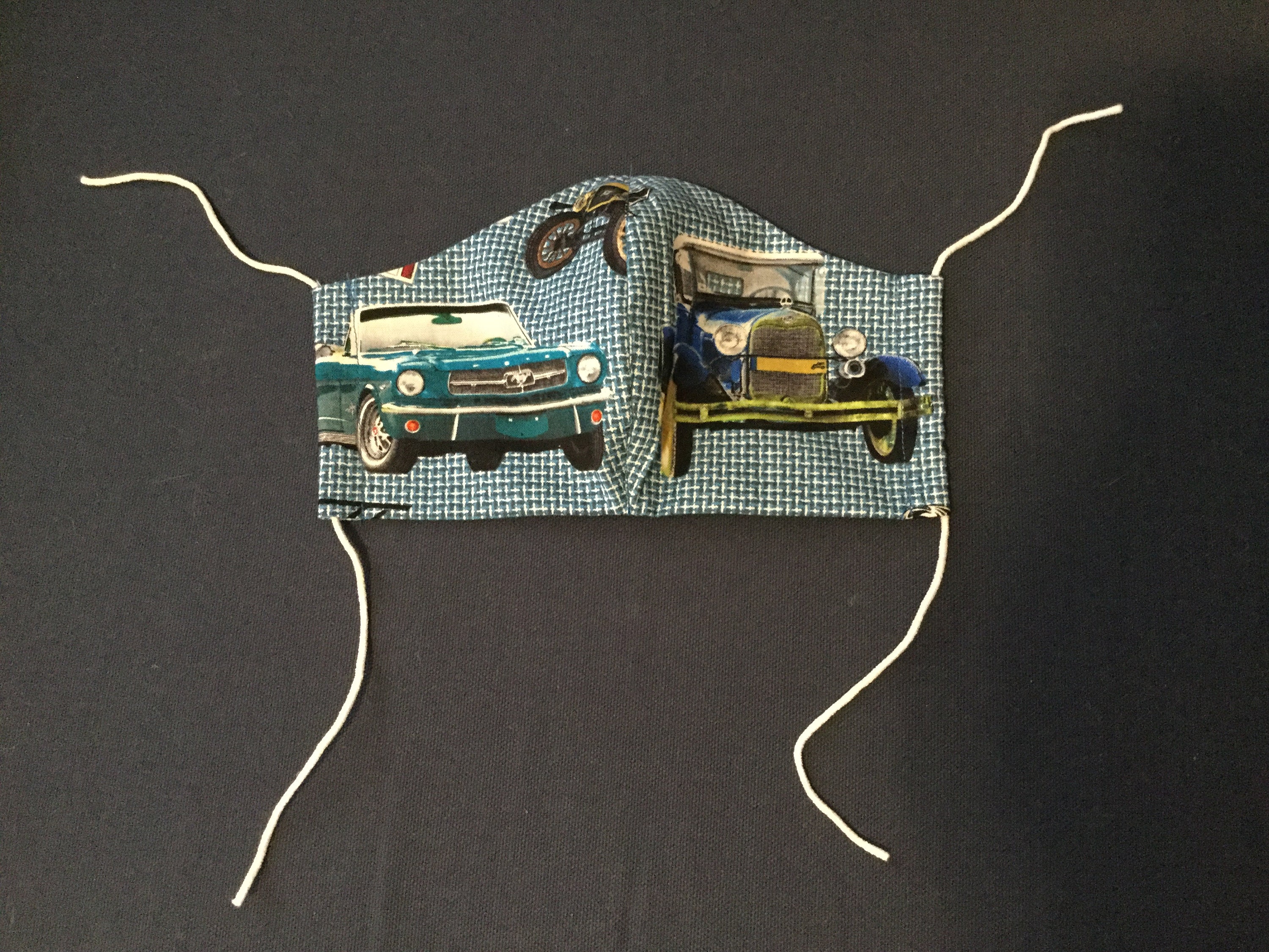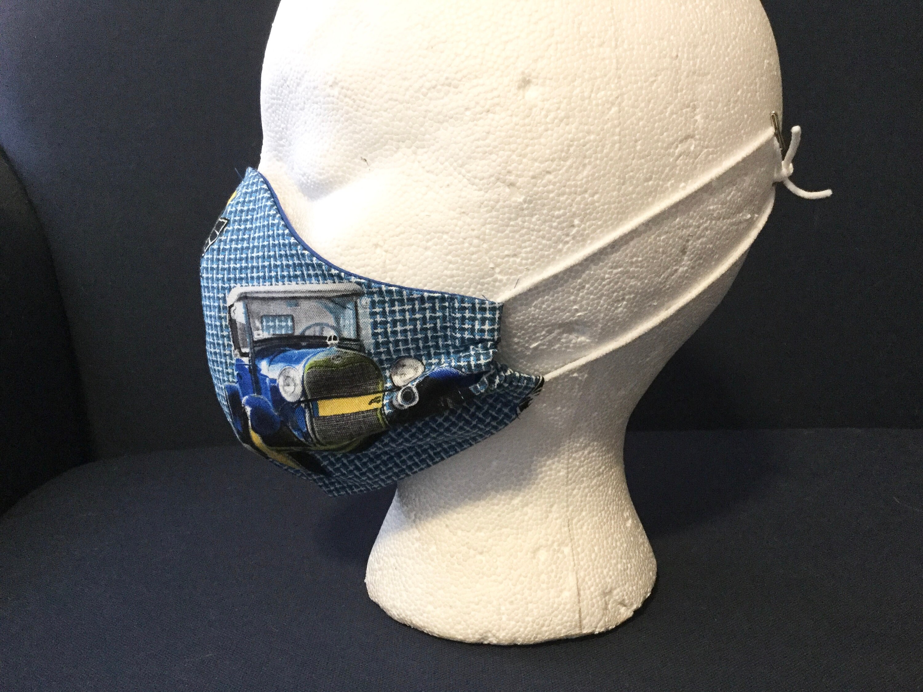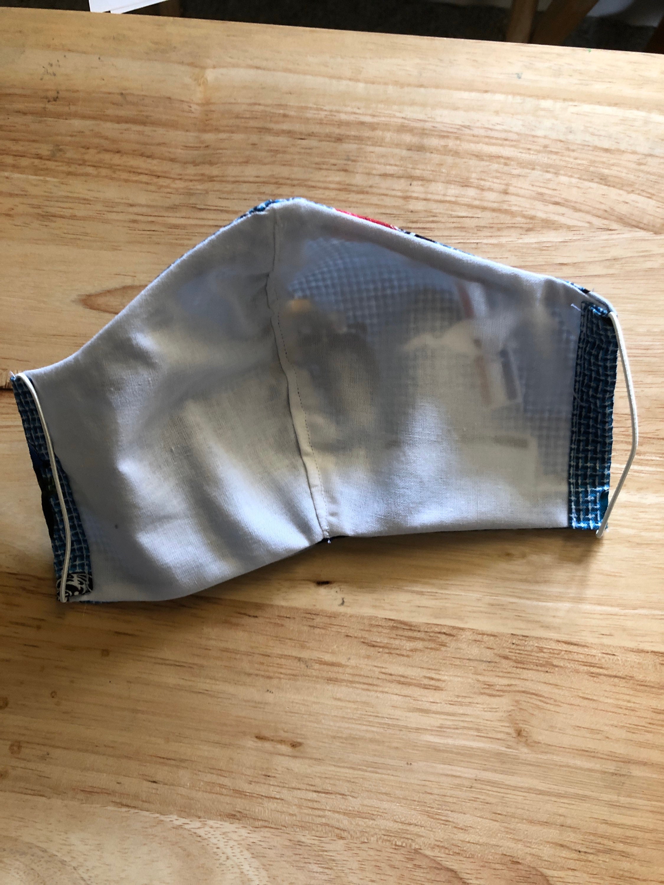 Hand sewn tailored lined cotton cloth reusable/washable face mask for use by the general public.